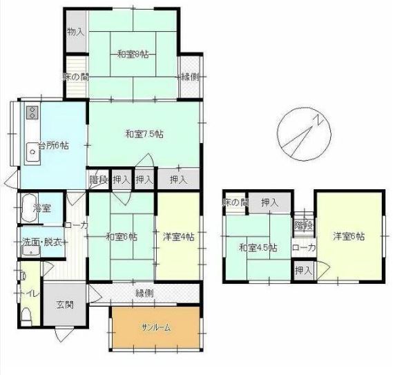 間取り/間取り内訳6DK / 和室 8帖、和室 7.5帖、洋室 6帖、和室 4.5帖洋室 6帖洋室 4帖台所 6帖